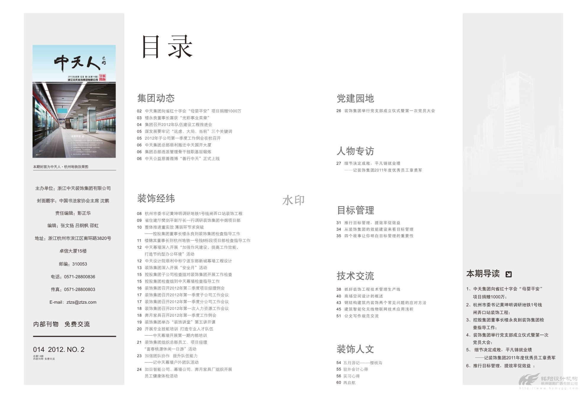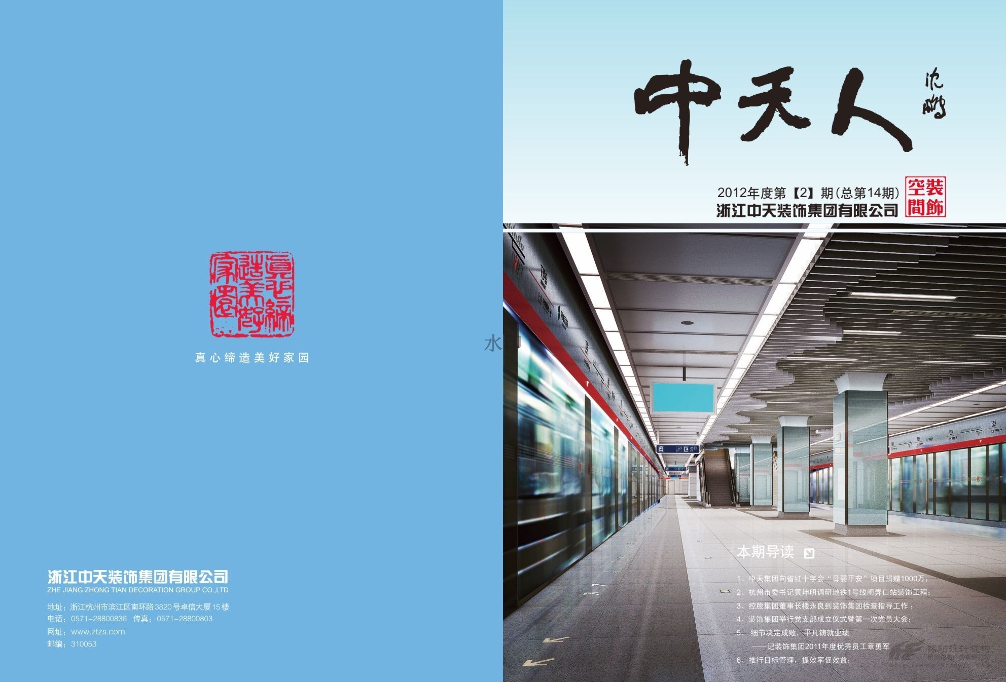 中國企業(yè)500強企業(yè),中國民營企業(yè)50強企業(yè),中天發(fā)展控股集團有限公司(簡稱“中天集團”)是一家以土木建筑、地產(chǎn)置業(yè)、電子??化工、投資為主要經(jīng)營業(yè)務(wù)的全國大型企業(yè)集團。2013年總產(chǎn)值及銷售額超600億元。下轄中天建設(shè)集團有限公司,浙江中天房產(chǎn)集團有限公司,中天西北建設(shè)投資集團有限公司,浙江中天裝飾集團有限公司,浙江新嘉聯(lián)電子股份有限公司,浙江中天氟硅材料有限公司等10多家成員企業(yè)。 銘陽與中天集團建立多年伙伴關(guān)系,為中天裝飾,中天建設(shè)等提供多次平面設(shè)計服務(wù),包括月刊、畫冊、說明書、文化形象等。